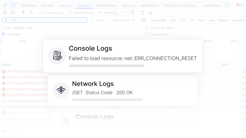 Debug visual issues faster with context-rich bug reports that include console logs and network activity.